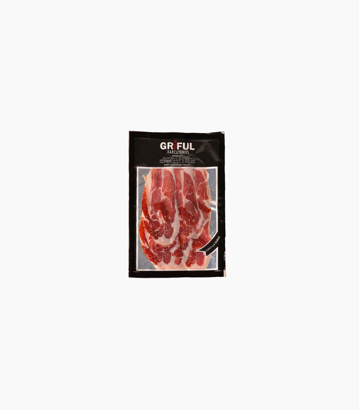 Ingredients: Espatlla de porc duroc, sal, dextrosa, sucre, antioxidants: E-331iii, E-310 i conservador: E-252.