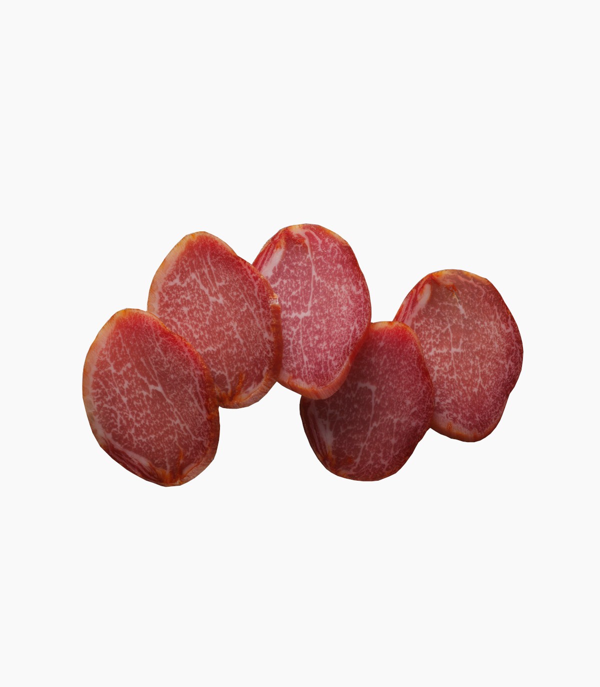La Canya de Llom de Gla Ibèric, és una de les peces més nobles del porc ibèric. Porcs criats en llibertat en deveses i alimentats per gla i riques herbes que marcaran les característiques finals del producte. Es tracta de cadascuna de les dues peces de carn que estan al costat de l'espinada i sota les costelles, condimentat amb sal, pebre vermell, all i orenga i posteriorment curat mitjançant un procés laboriós, lent i natural. Tallat i envasat a el buit.