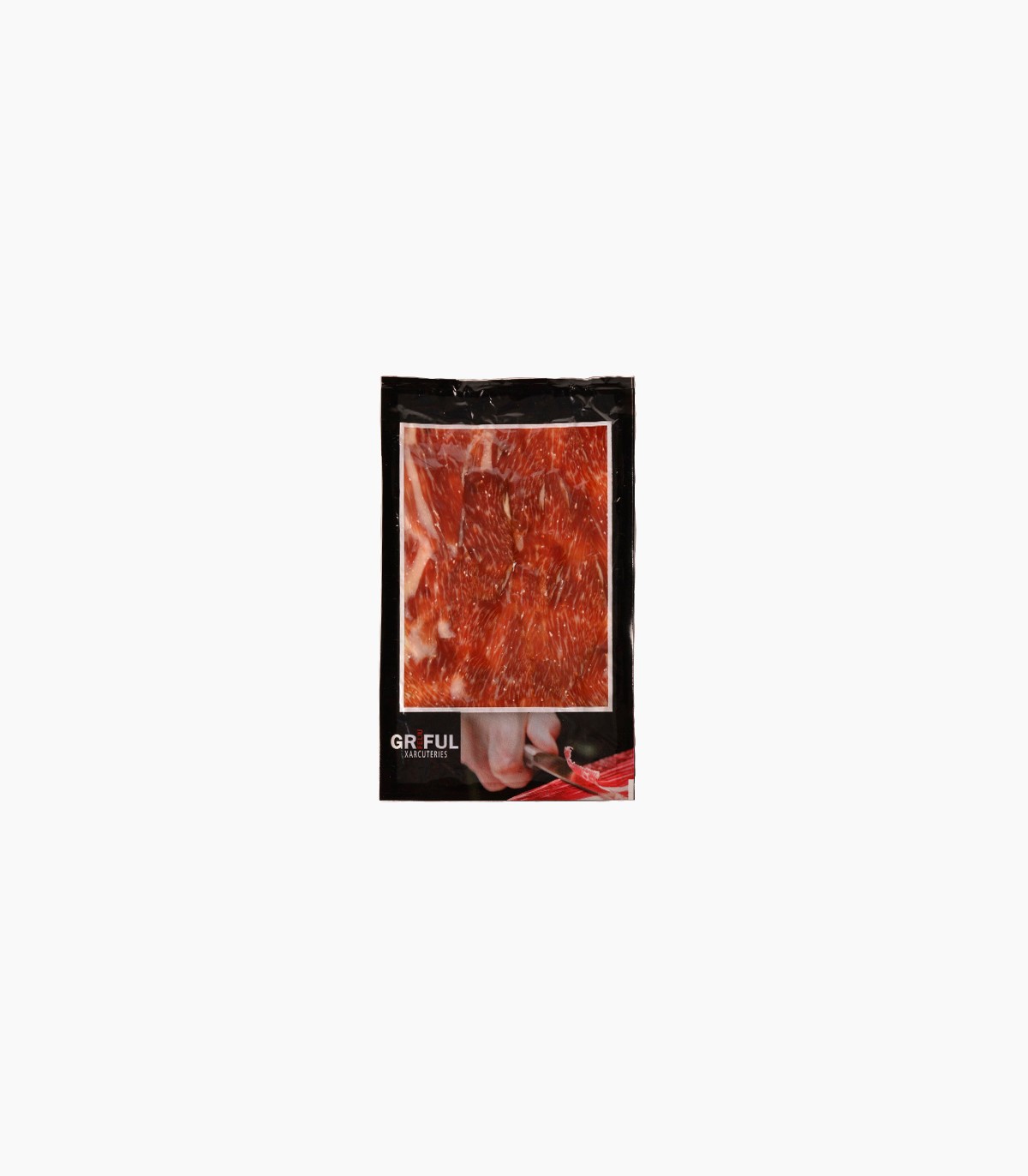 Extremitat posterior del porc duroc, porc creuat amb raça estatunidenc de Nova Jersey creuat amb porc blanc espanyol que li dona una infiltració en greix que millora la seva qualitat i sabor. Tallat a ganivet i envasat a el buit.