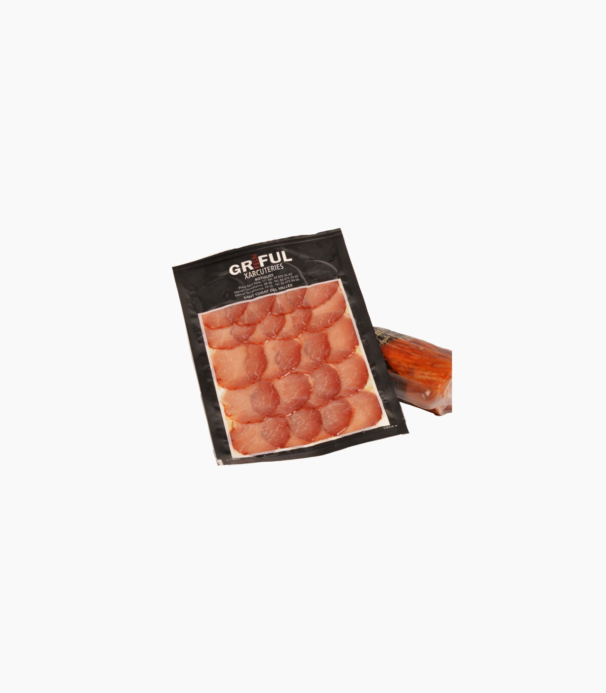 Ingredientes: Lomo de cerdo, sal común, pimentón, ajo, orégano, lactosa, azúcar, oleorresina de pimentón, dextrosa, conservador E-252, antioxidante E-301 y conservador E-250.