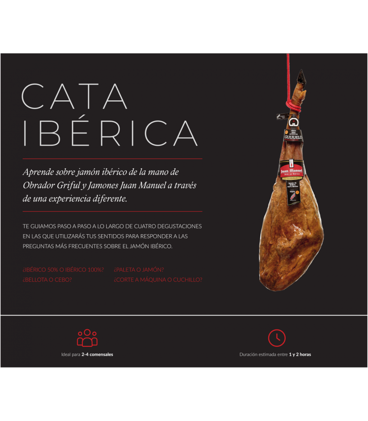 Cultiva tu paladar y aprende de jamón ibérico de la mano de Obrador Griful y Jamones Juan Manual a través de una experiencia diferente. En la Cata Ibérica Griful te explicamos todos los secretos y las claves más importantes de uno de los tesoros de nuestra gastronomía, el jamón ibérico. Hemos reunido los consejos, recomendaciones y trucos de nuestros expertos y te los revelamos a través de una experiencia activa con diversas degustaciones en las que podrás aprender, a tu ritmo y en compañía de tu pareja, amigos o familiares, a diferenciar las principales características del cerdo ibérico: